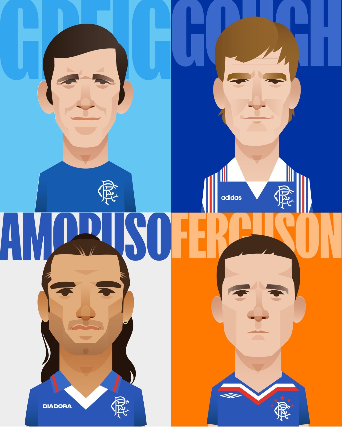 Coasters featuring John Greig, Richard Gough, Lorenzo Amoruso, Barry Ferguson. Captains artwork by Stanley Chow.