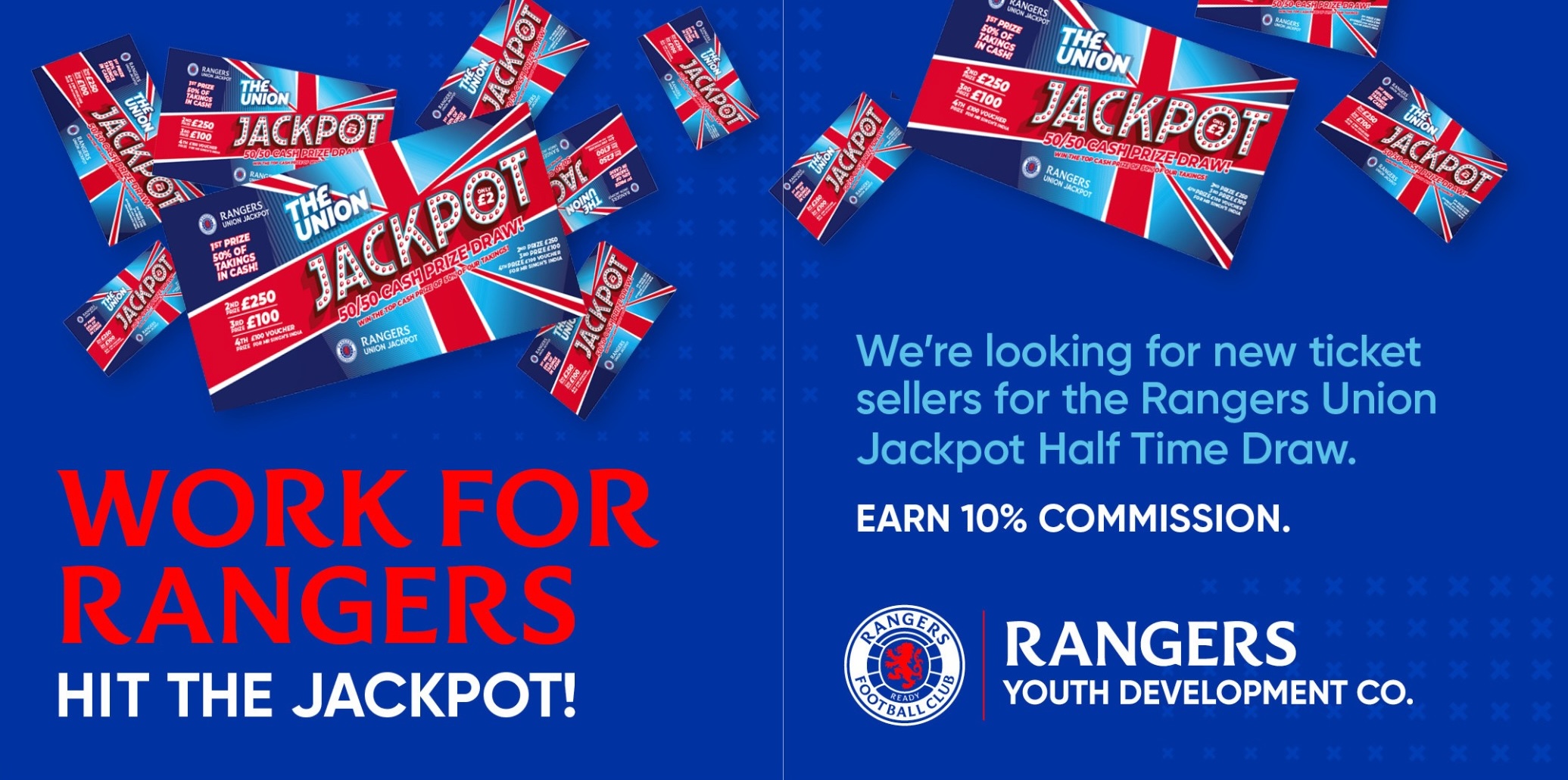 Fancy earning easy money on Ibrox matchdays? We’re looking to recruit Union Jackpot ticket sellers for home games.